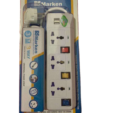 Enchufe múltiple Universal, tira de alimentación de 3 salidas, interruptor Individual con 2 USB, precio barato